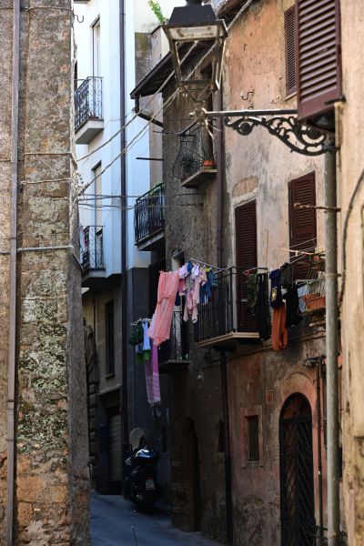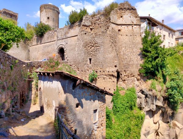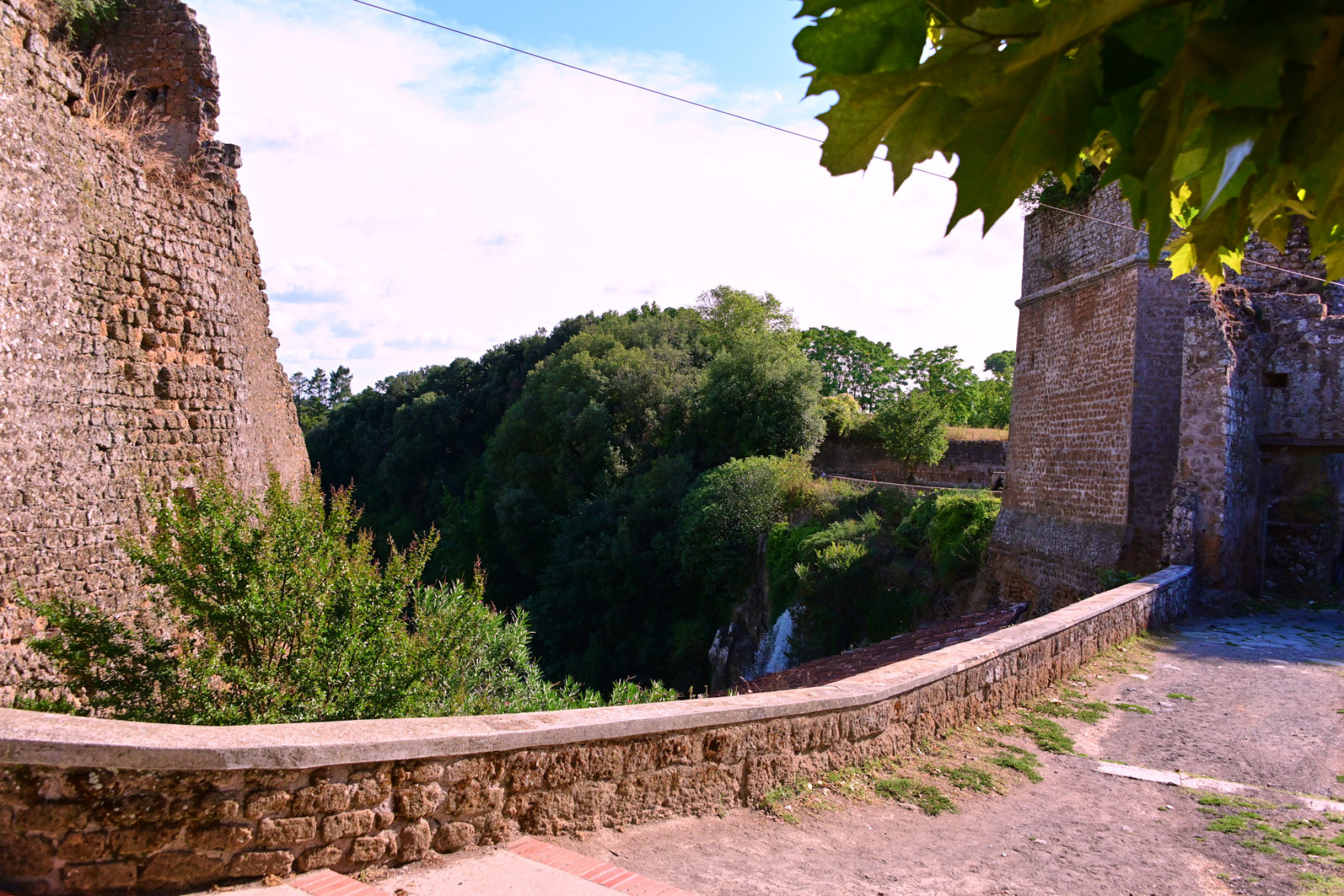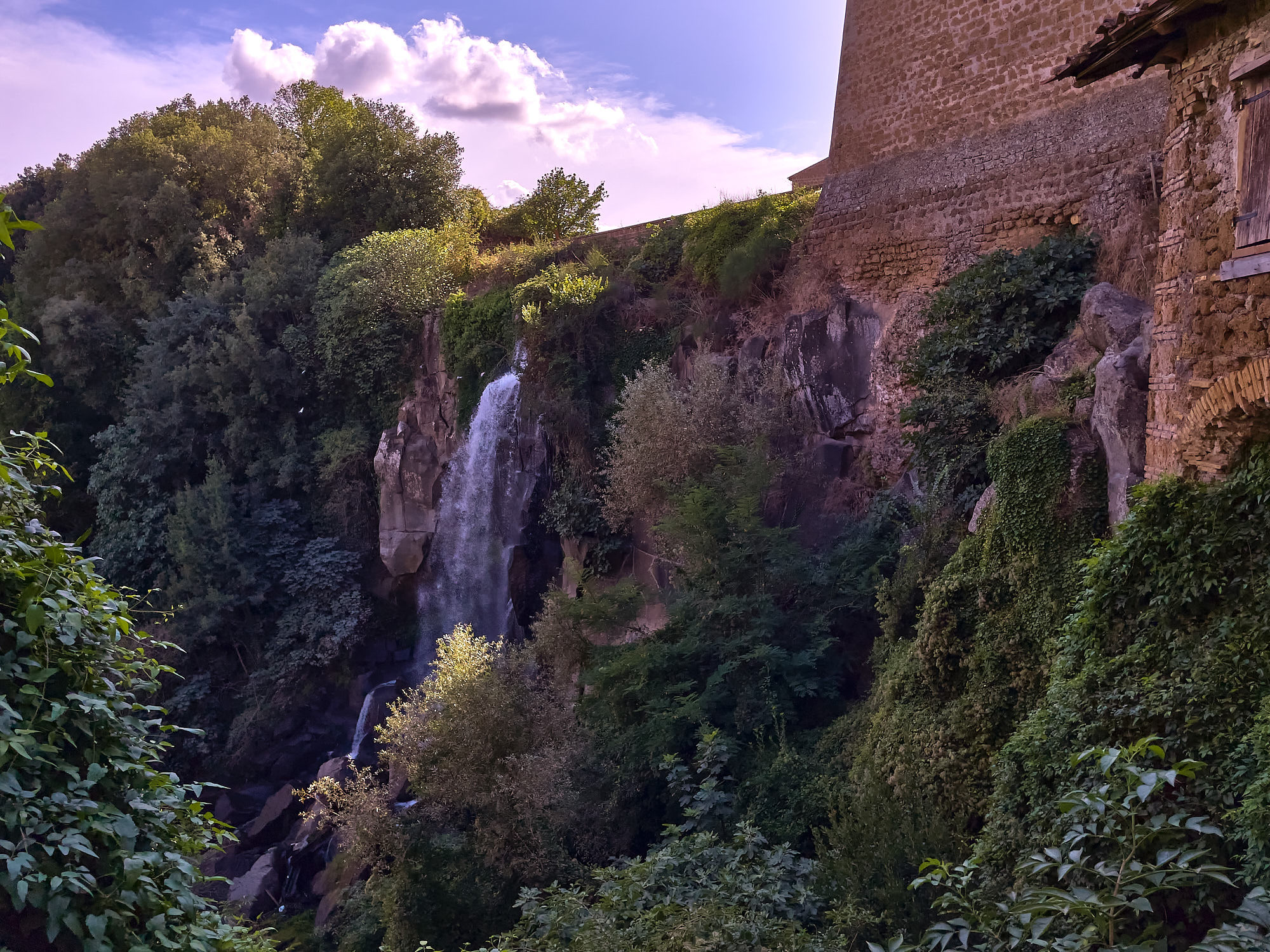 Nepi liegt ca. 50 km südöstlich von uns, zwischen dem Vicosee und dem Braccianosee, den Seen, die wir bereits besucht haben. Die Altstadt von Nepi ist auf einem steilen, von mehreren Schluchten durchschnittenen, keilförmigen Tuffplateau an den Ausläufern der Monti Cimini erbaut. Sie liegt am Zusammenfluss zweier Bäche (Rio Puzzolo und Rio Falisco). Dieser Wasserlauf stürzt als Kaskade von der Felsplatte, auf der das Kastell der Borgia liegt, in die Tiefe.