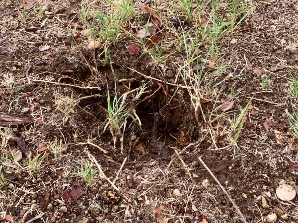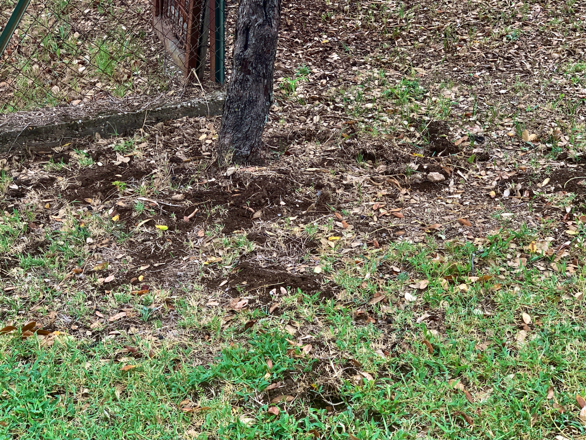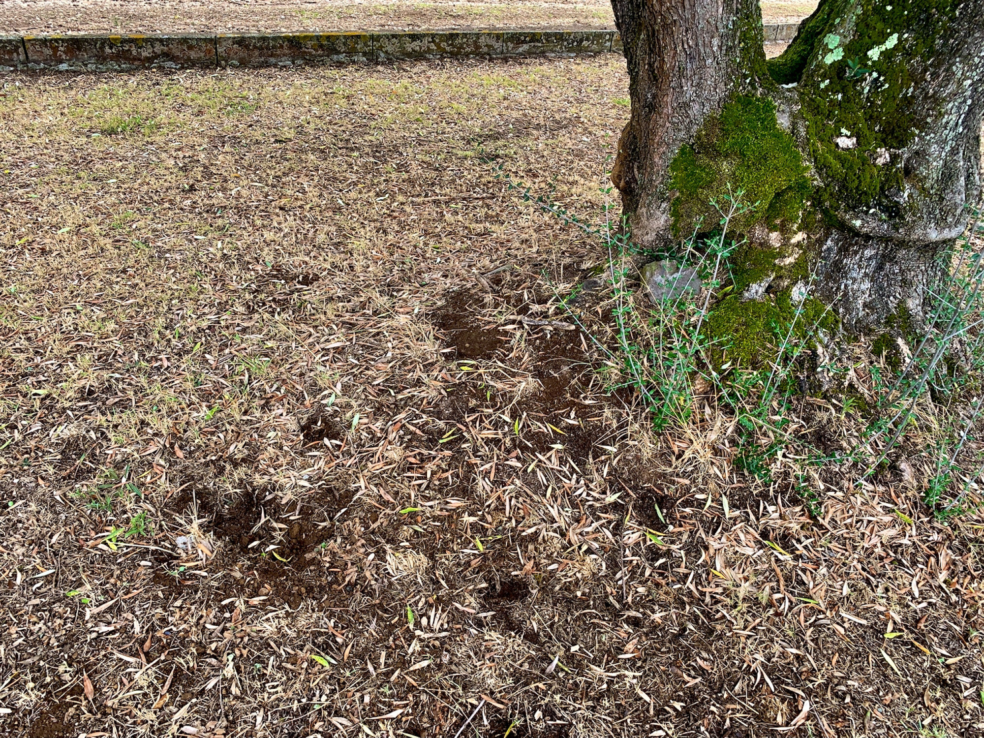 Die Zaunreparatur war gut gemeint, hat aber nur genau eine Nacht gehalten. Dafür wühlen und graben die Schweine jetzt um so mehr an diesen Stellen, quasi den halben Zaun entlang. Scheint so, als würden sie es uns so richtig zeigen wollen, daß sie in den Garten kommen, egal was wir tun. Auch meine extra ausgelegten Feigen, um zu sehen, wo sie sich überall herumtreiben, sind alle weg. Sie sind also überall.