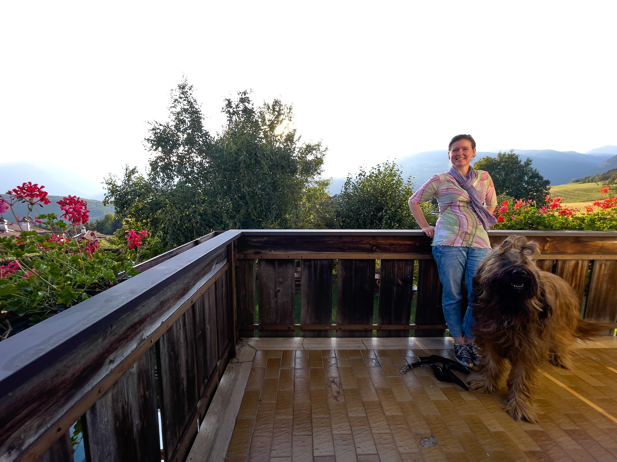 Gegen 11.15 Uhr geht es endlich los, nachdem schnell noch der Reise-Einkauf erledigt und Geld getankt wurde. Diesmal wollen wir es bis kurz nach die italienische Grenze schaffen, nicht wie sonst nur bis in die Nähe von Innsbruck. Dort haben wir eine schöne Bleibe für die eine Nacht reserviert, Balkon mit Bergblick erwartet uns ...
