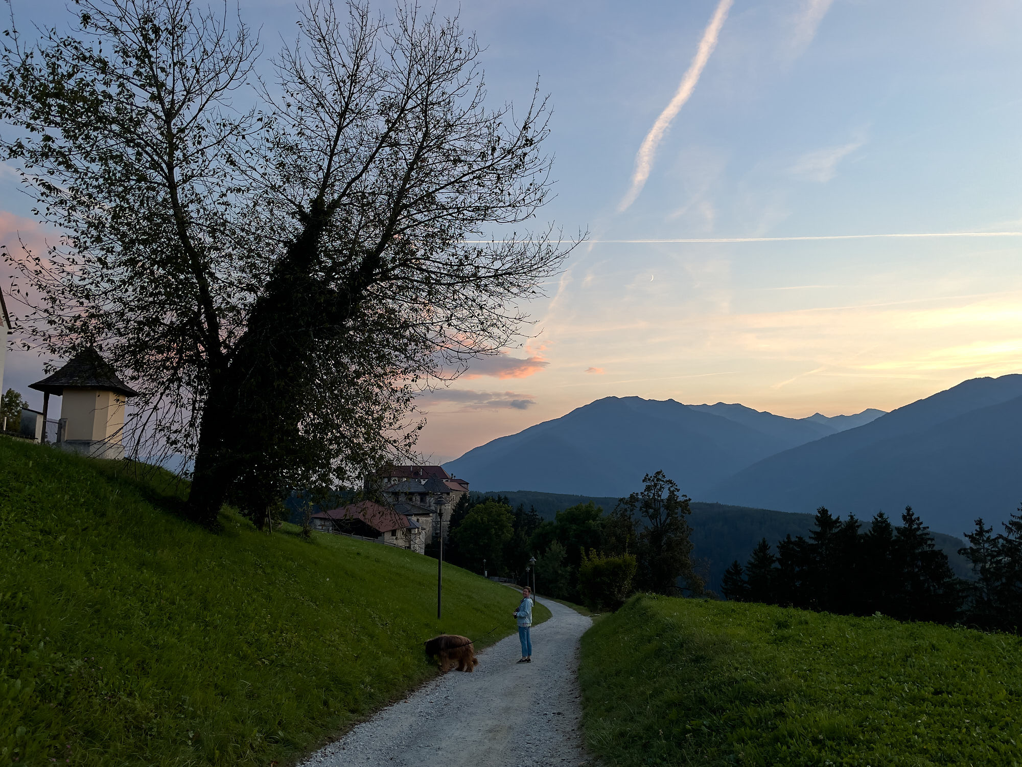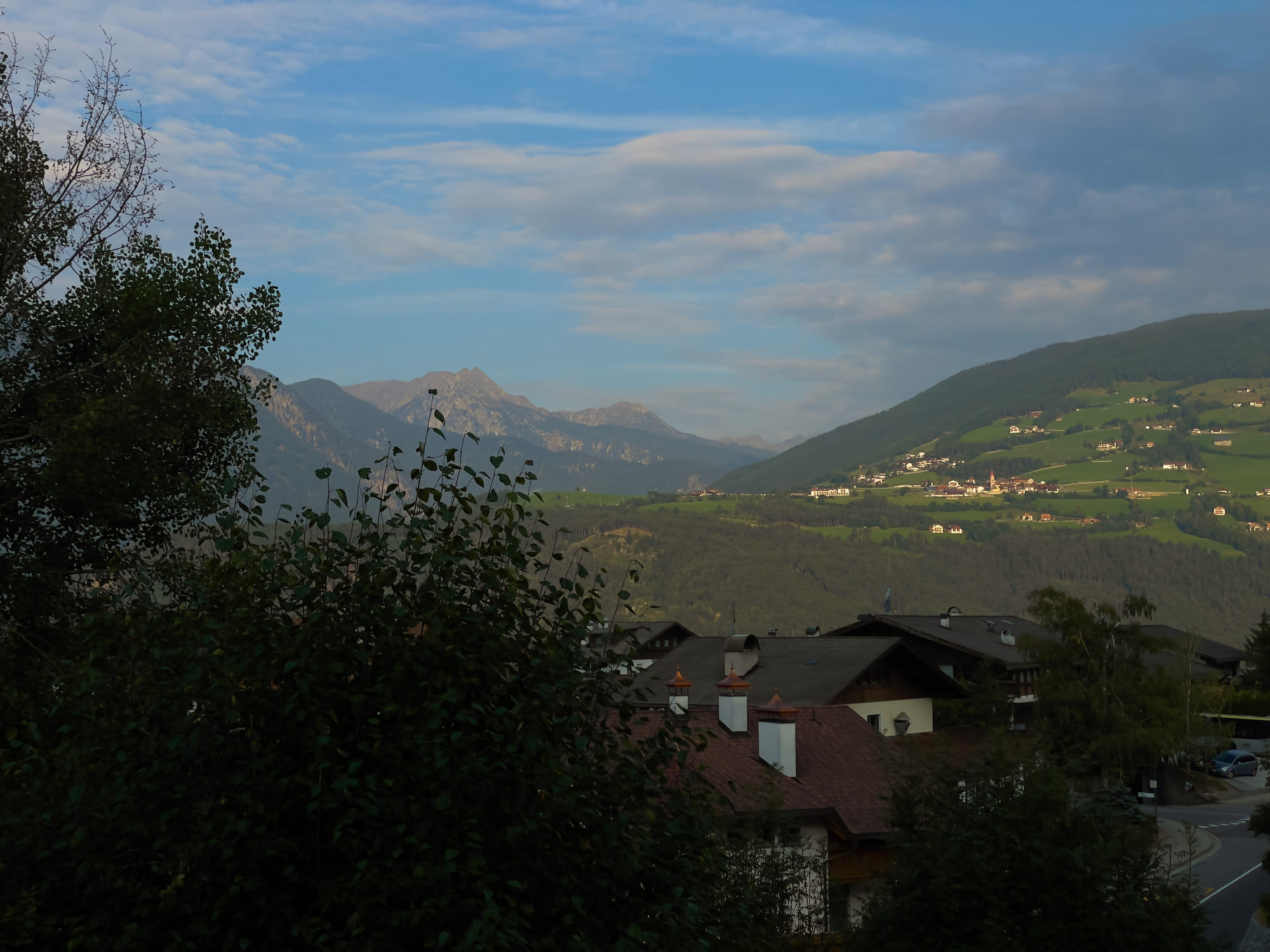 Nach angenehmen reichlichen sechs Stunden Fahrt bei blauem Himmel und Sonnenschein erreichen wir in Südtirol, im Örtchen Rodeneck die Pension Volgger, und werden dort auf das Herzlichste empfangen. Natürlich genießen wir die letzten Sonnenstrahlen und den versprochenen Blick auf die Berge, ehe wir noch eine kleine Runde duch den Ort drehen. Ein schönes Fleckchen Erde mit ausgesprochen netten Gastgebern haben wir wieder entdeckt!