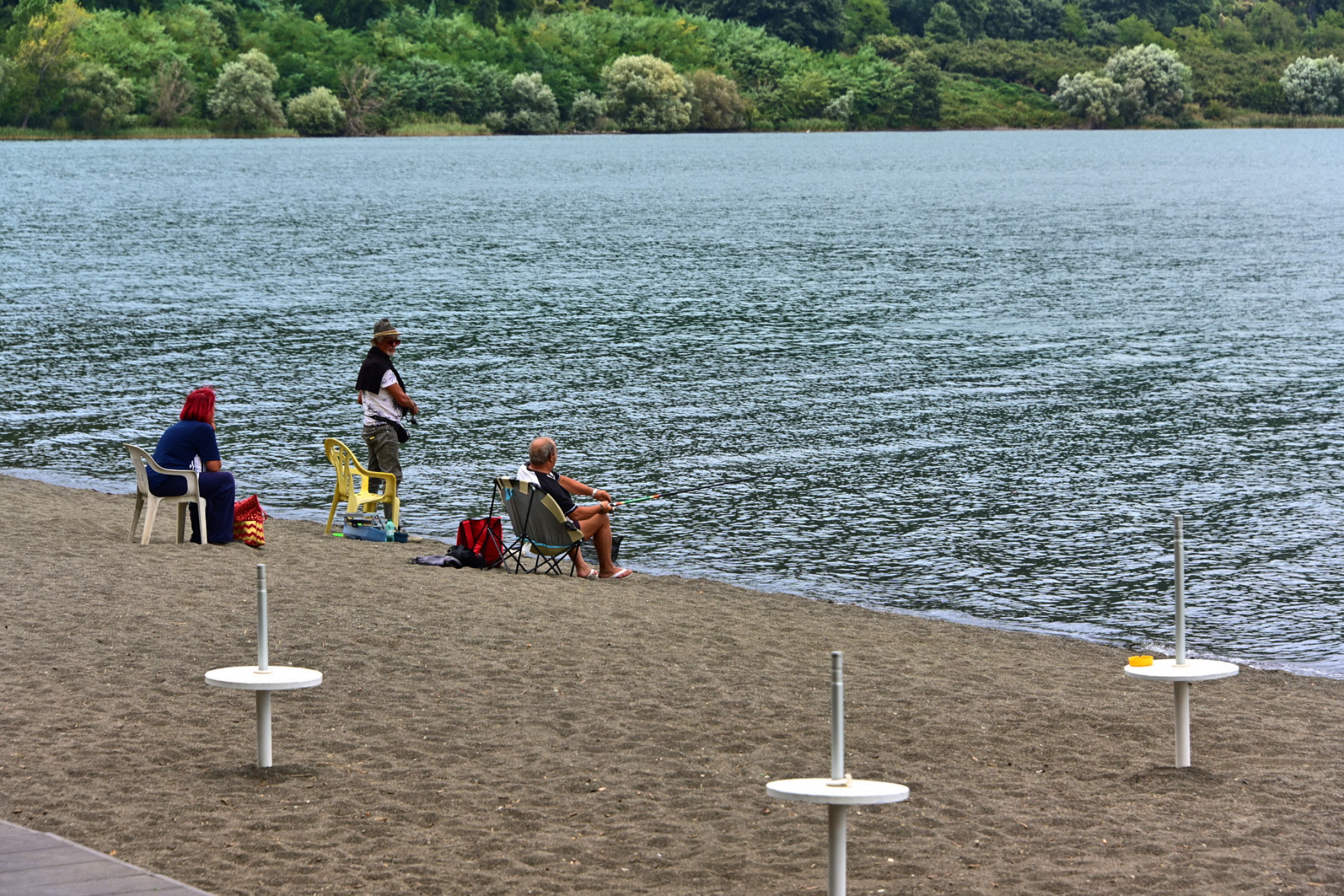 Am Südwestufer des Sees finden wir ein gemütliches Plätzchen für ein leckeres Mittagessen. Der Duft nach Holzkohle-Grill hat das Auto ausgebremst und uns magisch angezogen. Hier halten wir es ein gutes Stündchen aus, essen in Ruhe, beobachten ein zwei Angler plus Aufpasserin ([smily9]), die sich eigentlich ganz unbeobachtet fühlen ...
