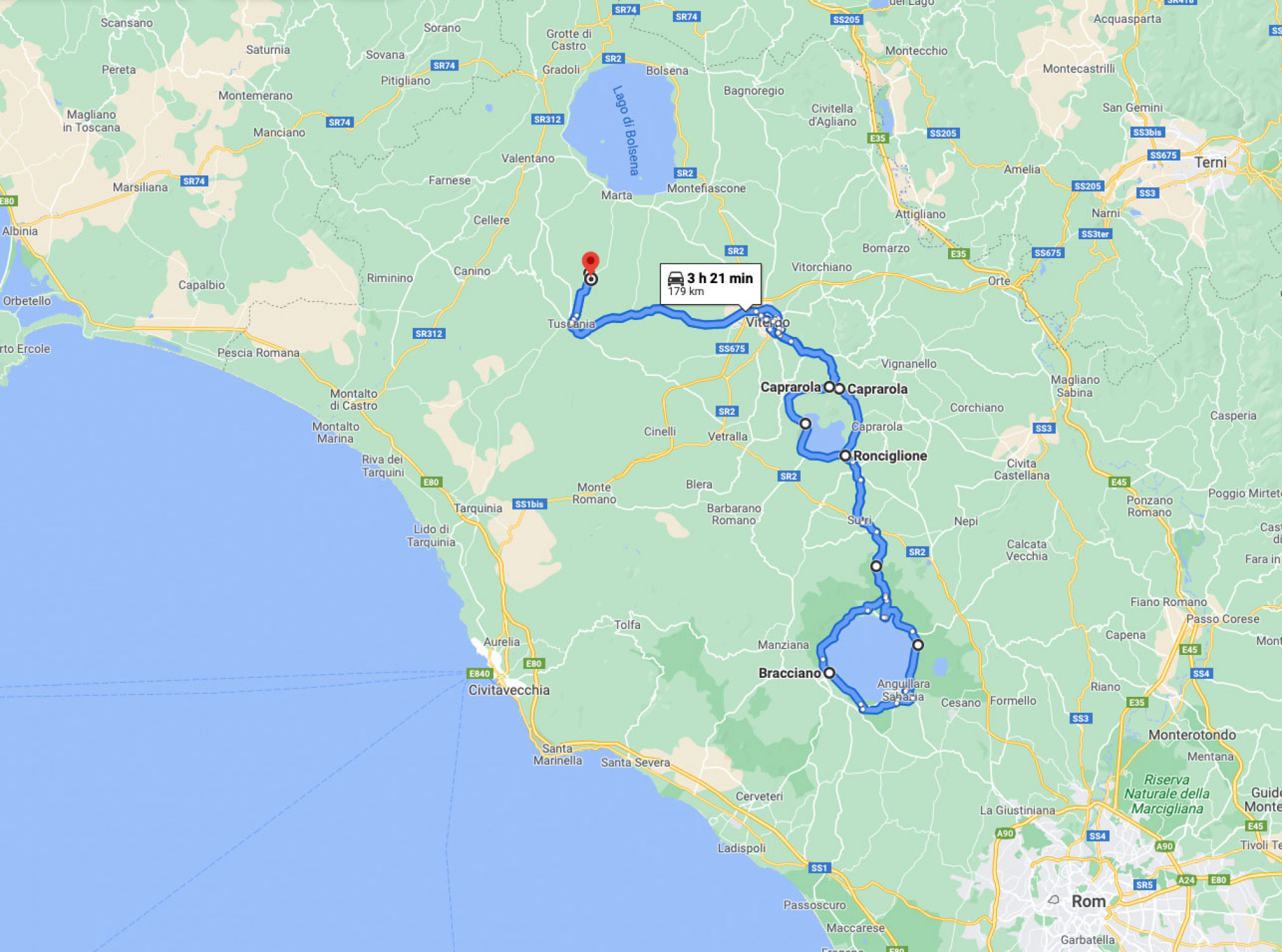 Wir wollen die beiden Seen südlich von uns, den Vicosee und den Braccianosee umfahren (soweit möglich). Es sind im Übrigen für uns wirklich keine Entfernungen und die Seen dazu recht klein, sie sind rasch umrundet.